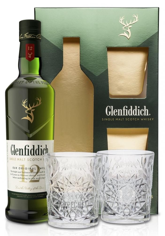 Glenfiddich 12 r. 40% 0,7L+ 2 poháre